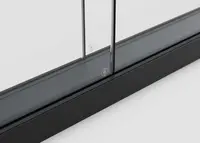 Die Glasflächen werden stumpf gestossen, ohne vertikale Stützenprofile. Eine schmale Trockendichtung sorgt für ein durchgehendes, transparentes Erscheinungsbild mit klarer Linienführung.