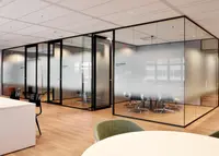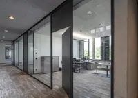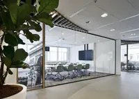Das System ist ein rahmenloses Trennwandsystem mit filigranen Boden- und Deckenanschlüssen. Es schafft eine ruhige, transparente Raumwirkung – ideal für moderne Arbeitsumgebungen mit hoher Lichtdurchlässigkeit.