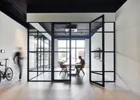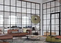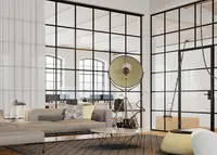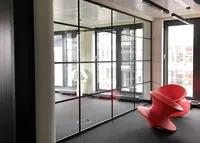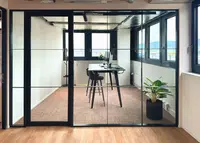 Das System kombiniert transparente Glasflächen mit filigranen Sprossenteilungen und schafft so eine strukturierte Raumwirkung – ideal, wenn Zonenbildung und Design kombiniert werden sollen.