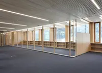 Ein versetzbares Rahmenwandsystem aus Holzwerkstoffen mit doppelt verglasten Elementen. Es wird vormontiert geliefert und vor Ort verbunden – für effiziente und hochwertige Raumlösungen.