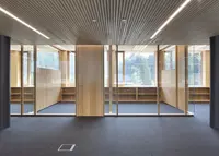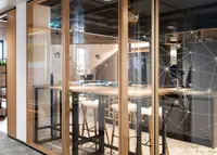 Die Holz-Glas-Doppelverglasung überzeugt durch hohe Schallschutzwerte, flexible Systemintegration und natürlich warme Oberflächen – perfekt für anspruchsvolle Raumkonzepte.