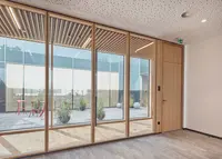 Natürlich und schallwirksam: Die Holz-Glas-Doppelverglasung vereint Akustikleistung mit ruhiger Gestaltung und natürlicher Materialität – für Räume mit Charakter und Funktion.