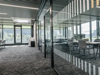 Einscheibenverglasung mit und ohne Brandschutz im gekonnten, modernen Zusammenspiel.