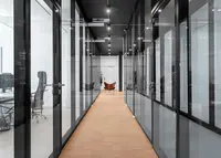 Für die FE Agentur AG war klar: Die Glastrennwände sollten millimetergenau zur Akustikdecke und Holzverkleidung passen – ohne sichtbare Kompromisse. Uniska entwickelte dafür individuelle Spezialanschlüsse und eine Tür-Sonderlösung in Structural Glazing mit 45 dB Schallschutz. Das Zusammenspiel von Design, Funktion und Präzision wurde zum Markenzeichen dieses lichtdurchfluteten Büros.
