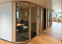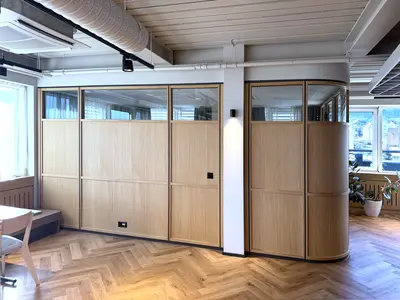 Harmonische Raumführung durch Glasradien und gebürstete Eiche